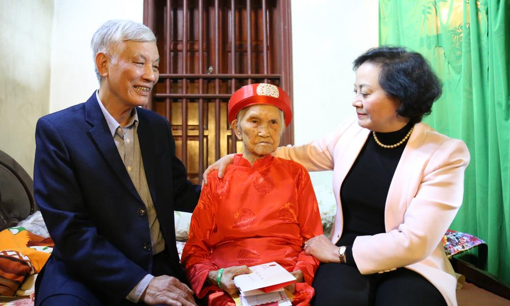 Phó Thủ tướng Phạm Thị Thanh Trà tặng quà cụ Nguyễn Thị Tuyến (phường Mão Điền) tròn 100 tuổi