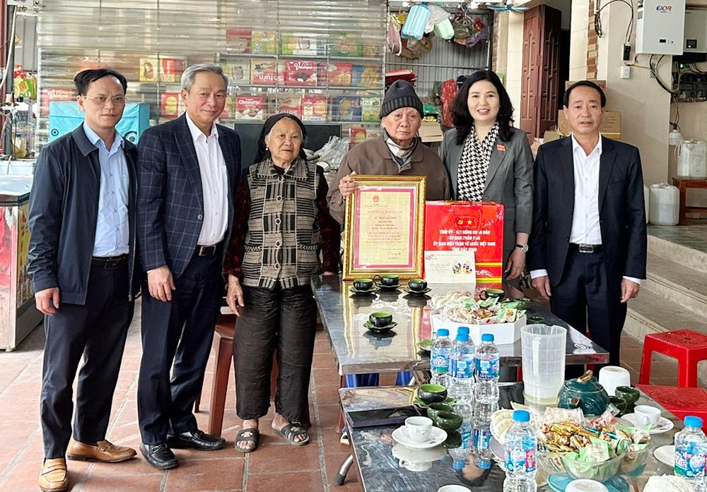 Tại đây, đồng chí Trần Thị Vân và các đồng chí trong đoàn đã đến thăm, tặng quà Tết: Bệnh binh Nguyễn Văn Sỏi (sinh năm 1947), có con khuyết tật thần kinh đặc biệt nặng, ở tổ dân phố Mỏ Thổ; ông Thân Văn Minh, ở tổ dân phố Chùa, 90 tuổi, người cao tuổi tiêu biểu, thương binh (tham gia kháng chiến chống thực dân Pháp); gia đình chị Tạ Thị Loan (sinh năm 1985), ở tổ dân phố chùa, hộ nghèo, chồng mất, nuôi 4 con trong độ tuổi ăn học, mẹ chồng già yếu.