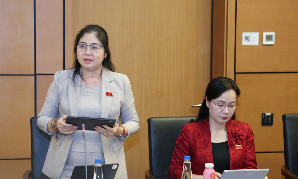 | Đại biểu Đỗ Thị Việt Hà phát biểu trong phiên thảo luận tại tổ của Quốc hội, chiều 3/12. |