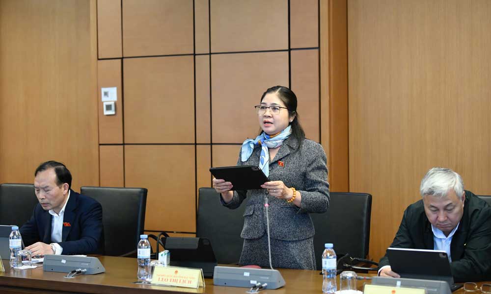 | Đại biểu Leo Thị Lịch phát biểu trong phiên thảo luận tại tổ, sáng 21/11. |