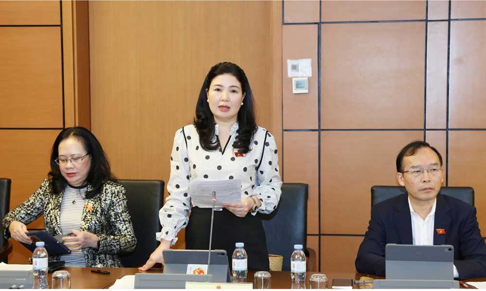 | Phó trưởng Đoàn đại biểu Quốc hội tỉnh Bắc Ninh Trần Thị Vân phát biểu trong phiên thảo luận tại tổ, sáng 21/11. |