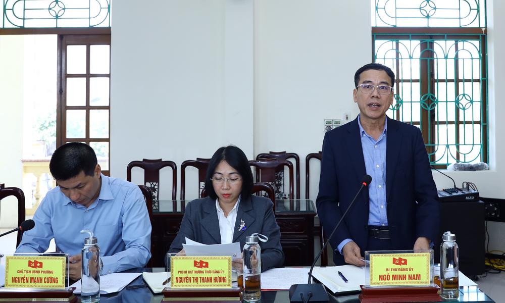 Tại buổi làm việc, Đảng ủy phường phản ánh những khó khăn, vướng mắc như: Một số cán bộ, công chức lúng túng với mô hình chuyển đổi số. Hệ thống công nghệ thông tin, cơ sở dữ liệu còn thiếu, chưa đồng bộ; thiếu thiết bị phục vụ số hóa. Nhu cầu vốn cho hạ tầng, môi trường, phòng chống thiên tai lớn nhưng ngân sách hạn chế; nhiều dự án trọng điểm, cấp bách thiếu vốn; vướng mắc trong giải phóng mặt bằng.