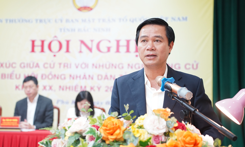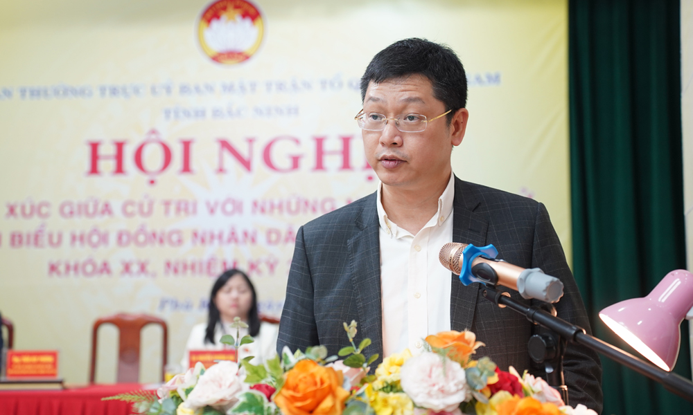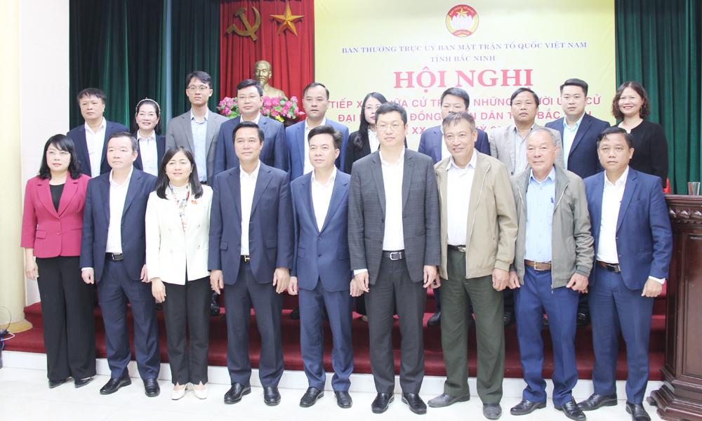 Đại diện Ủy ban MTTQ các phường thông qua danh sách, trình bày tiểu sử tóm tắt của 8 ông, bà ứng cử đại biểu HĐND tỉnh khóa XX gồm: Trần Huy Phương, Phó Bí thư Tỉnh ủy, Chủ nhiệm Ủy ban Kiểm tra Tỉnh ủy; Lê Xuân Lợi, Ủy viên Ban Thường vụ Tỉnh ủy, Phó Chủ tịch UBND tỉnh; Nguyễn Phương Mai, Phó Chủ tịch Ủy ban MTTQ tỉnh, Chủ tịch Hội Liên hiệp Phụ nữ tỉnh; Đỗ Tuấn Sơn, Bí thư Đảng ủy phường Từ Sơn; Lương Việt Hùng, công chức Văn phòng Đoàn đại biểu Quốc hội và HĐND tỉnh; Đồng Thị Huệ, công chức Văn phòng UBND tỉnh; Nghi Quang Tuấn, Phó Chủ tịch Ủy ban MTTQ phường, Bí thư Đoàn phường Phù Khê; Vũ Thị Hà Ngân, công chức Văn phòng Đảng ủy phường Từ Sơn.