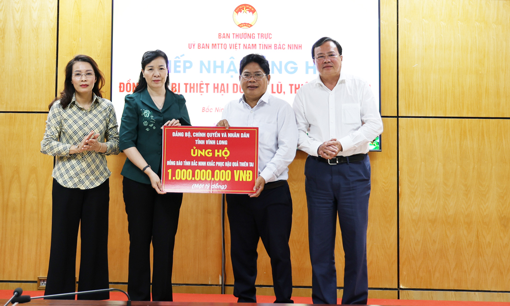 Tỉnh Vĩnh Long trao 1 tỷ đồng hỗ trợ Nhân dân tỉnh Bắc Ninh khắc phục thiệt hại sau bão lũ
