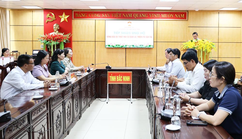 Tiếp nhận sự ủng hộ, đồng chí Phó Bí thư Thường trực Tỉnh ủy Nguyễn Thị Hương cảm ơn sự quan tâm, sẻ chia, nghĩa tình đồng bào của tỉnh Vĩnh Long. Khẳng định đây là nguồn động viên lớn, thể hiện tinh thần đoàn kết, gắn bó giữa các địa phương trong cả nước. Đồng chí cho biết: Bắc Ninh là một trong những tỉnh chịu ảnh hưởng nặng nề sau cơn bão số 10, 11 và mưa lũ. Uớc tính thiệt hại hơn 1.700 tỷ đồng, làm 5 người chết. Tỉnh đã tập trung cao, quyết liệt các biện pháp nhằm chủ động ứng phó, hỗ trợ sau mưa lũ với phương châm không để hộ dân nào bị đói, thiếu lương thực, thực phẩm và đặt mục tiêu an toàn của người dân lên trên hết, trước hết.