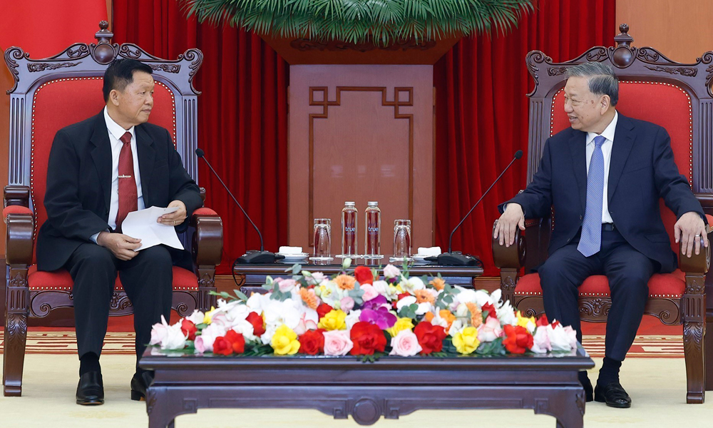 Tổng Bí thư Tô Lâm bày tỏ vui mừng về sự phát triển tốt đẹp của mối quan hệ Việt Nam-Lào, trong đó có sự đóng góp rất quan trọng của lực lượng an ninh hai nước; khẳng định Việt Nam luôn coi trọng và dành ưu tiên cao nhất cho việc củng cố và tăng cường quan hệ hữu nghị vĩ đại, đoàn kết đặc biệt, hợp tác toàn diện, gắn kết chiến lược Việt Nam-Lào, coi đây là nhiệm vụ chiến lược, có ý nghĩa sống còn đối với sự phát triển của mỗi nước; nhấn mạnh Việt Nam trước sau như một luôn ủng hộ Lào phát triển, sẵn sàng chia sẻ kinh nghiệm với Lào trên tất cả các lĩnh vực, hai nước Việt Nam-Lào sẽ nắm chặt tay vững bước cùng nhau phát triển.