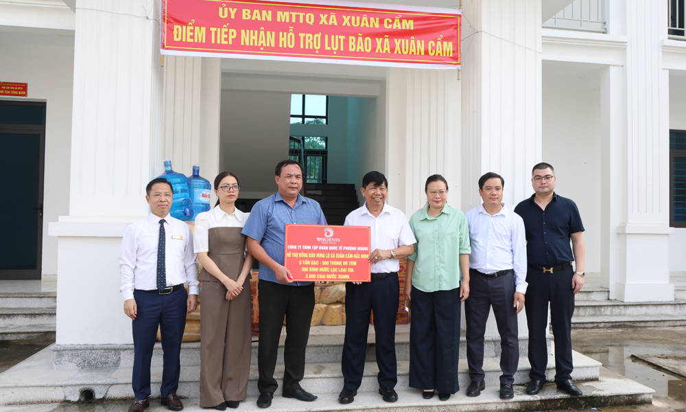 Tham gia đoàn trao hàng cứu trợ có đồng chí Thái Hải Anh, Phó Chủ tịch Ủy ban MTTQ tỉnh; ông Nguyễn Văn Hùng, Chủ tịch HĐQT Công ty trách nhiệm hữu hạn Tập đoàn Quốc tế Phượng Hoàng cùng cán bộ, nhân viên, người lao động Công ty.