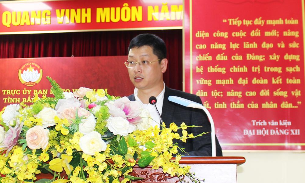 | Ứng cử viên Trần Huy Phương, Phó Bí thư Tỉnh ủy, Chủ nhiệm Ủy ban Kiểm tra Tỉnh ủy trình bày chương trình hành động. |