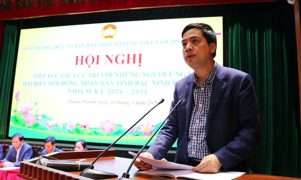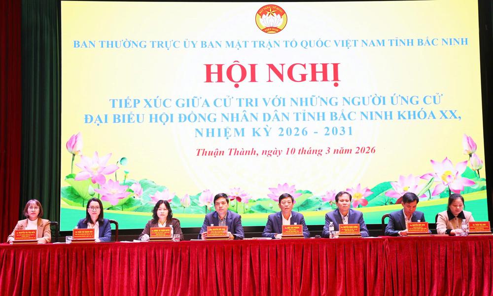 Đại diện Ban Thường trực Ủy ban MTTQ phường Thuận thành giới thiệu danh sách, thông qua tiểu sử tóm tắt những người ứng cử đại biểu HĐND tỉnh khóa XX, nhiệm kỳ 2026 - 2031 của đơn vị bầu cử số 13 gồm các ông, bà: Ngô Tân Phượng, Tỉnh ủy viên, Phó Chủ tịch UBND tỉnh; Nguyễn Đức Sâm, Tỉnh ủy viên, Bí thư Đảng ủy, Chủ tịch HĐND phường Trạm Lộ; Dương Thị Thanh Huyền, Phó Trưởng Ban Kinh tế - Ngân sách, HĐND tỉnh; Nguyễn Xuân Cường, Phó Trưởng Ban Văn hóa - Xã hội, HĐND tỉnh; Nguyễn Đức Kiên, Phó Bí thư Đảng ủy, Chủ tịch UBND phường Thuận Thành; Trần Thị Thanh Hòa, công chức Hội Nông dân tỉnh; Trần Thị Linh, viên chức Trung tâm Hỗ trợ đầu tư và phát triển khu công nghiệp, Ban Quản lý các Khu công nghiệp tỉnh; Nguyễn Thị Thu Hiền, giáo viên Trường Mầm non Trạm Lộ, phường Trạm Lộ.