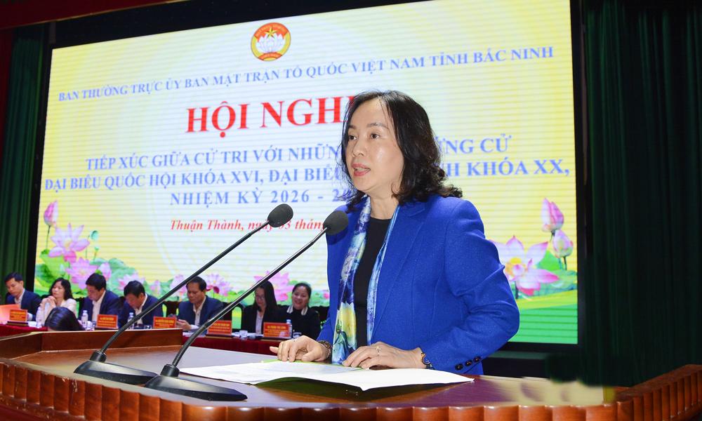 Tại hội nghị, đại diện Ban Thường trực Ủy ban MTTQ 2 phường thông qua danh sách, tiểu sử tóm tắt của người ứng cử đại biểu Quốc hội khóa XVI (đơn vị bầu cử số 6), gồm các ông, bà: Nguyễn Thị Kim Anh, Ủy viên là đại biểu Quốc hội hoạt động chuyên trách tại Ủy ban Khoa học, Công nghệ và Môi trường của Quốc hội; Trần Văn Đăng, Ủy viên Ban Chấp hành Trung ương Đoàn, Phó Chủ tịch Ủy ban MTTQ tỉnh, Bí thư Tỉnh đoàn Bắc Ninh; Hoàng Tuấn Đông, Ủy viên Ủy ban Kiểm tra Đảng ủy, cơ quan Ủy ban Kiểm tra Đảng ủy phường Thuận Thành; Dương Thị Nhung, công chức Văn phòng Đoàn đại biểu Quốc hội và HĐND tỉnh Bắc Ninh.
