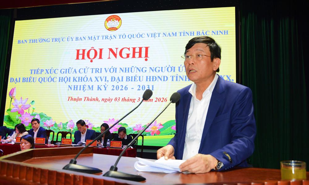 Đại diện Ban Thường trực Ủy ban MTTQ địa phương thông qua danh sách, tiểu sử tóm tắt của những người ứng cử đại biểu HĐND tỉnh nhiệm kỳ 2026 - 2031 (đơn vị bầu cử số 13), gồm các ông, bà: Ngô Tân Phượng, Tỉnh ủy viên, Phó Chủ tịch UBND tỉnh; Nguyễn Đức Sâm, Tỉnh ủy viên, Bí thư Đảng ủy, Chủ tịch HĐND phường Trạm Lộ; Nguyễn Xuân Cường, Phó Trưởng Ban Văn hóa - Xã hội, HĐND tỉnh; Dương Thị Thanh Huyền, Phó Trưởng Ban Kinh tế - Ngân sách, HĐND tỉnh; Nguyễn Đức Kiên, Phó Bí thư Đảng ủy, Chủ tịch UBND phường Thuận Thành; Trần Thị Thanh Hòa, công chức Hội Nông dân tỉnh Bắc Ninh; Trần Thị Linh, viên chức Trung tâm Hỗ trợ đầu tư và phát triển khu công nghiệp, Ban Quản lý các Khu công nghiệp tỉnh; Nguyễn Thị Thu Hiền, giáo viên Trường Mầm non Trạm Lộ, phường Thuận Thành.