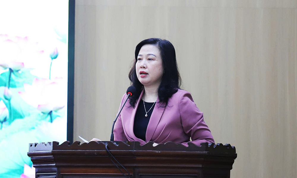 | Phó Chủ tịch Thường trực HĐND tỉnh Trần Thị Hằng trình bày chương trình hành động. |