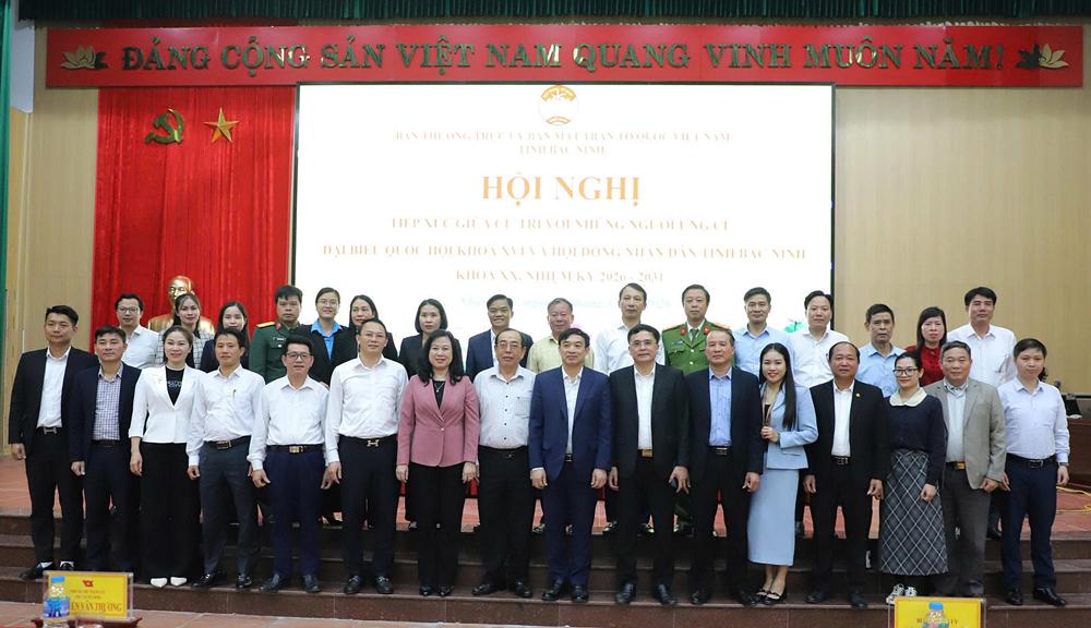 | Các ứng cử viên đại biểu Quốc hội khóa XVI (đơn vị bầu cử số 4) và đại biểu HĐND tỉnh khóa XX (đơn vị bầu cử số 11) tiếp xúc cử tri phường Hạp Lĩnh. |