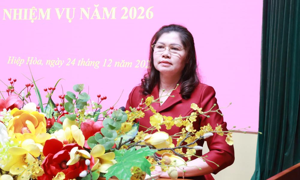 Phát biểu chỉ đạo, đồng chí Lâm Thị Hương Thành ghi nhận, biểu dương và đánh giá cao những kết quả toàn diện Đảng bộ, chính quyền và Nhân dân xã Hiệp Hòa đạt được trong năm 2025.