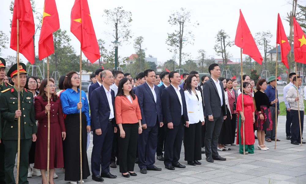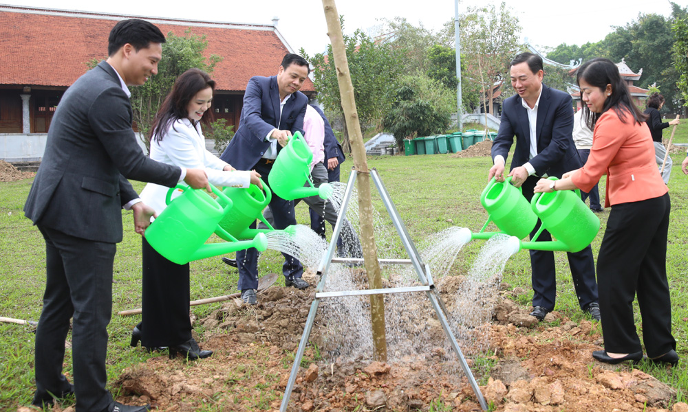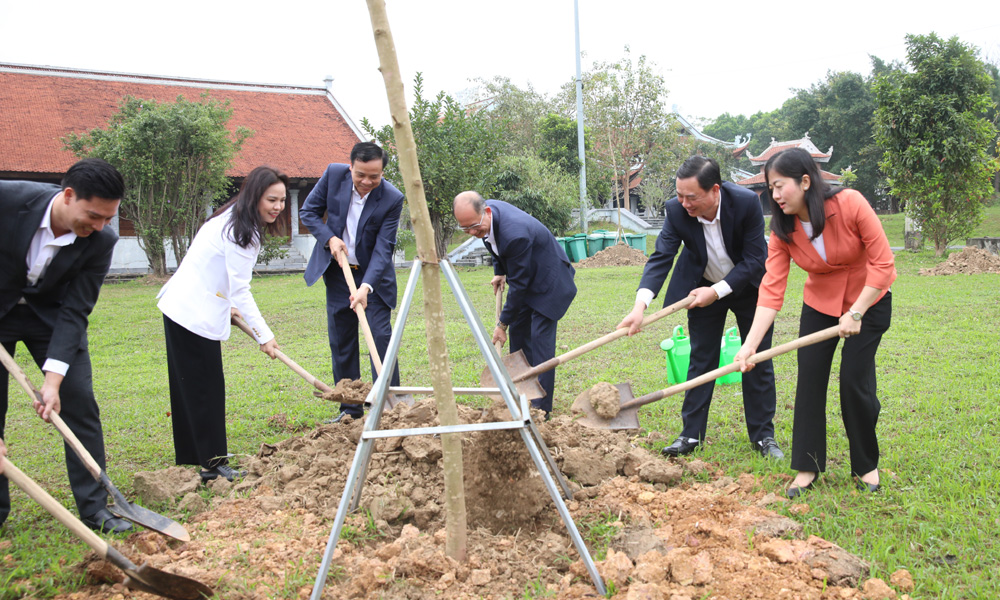 | Đồng chí Vũ Trí Hải cùng các đại biểu tham gia trồng cây tại khu vực Đền thờ Thái úy Lý Thường Kiệt. |
