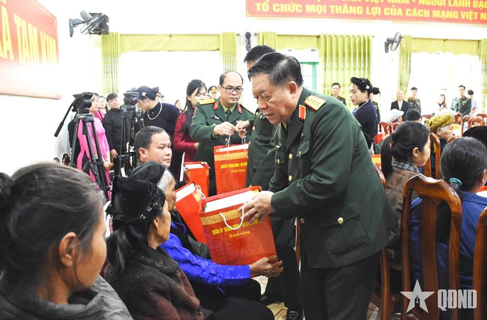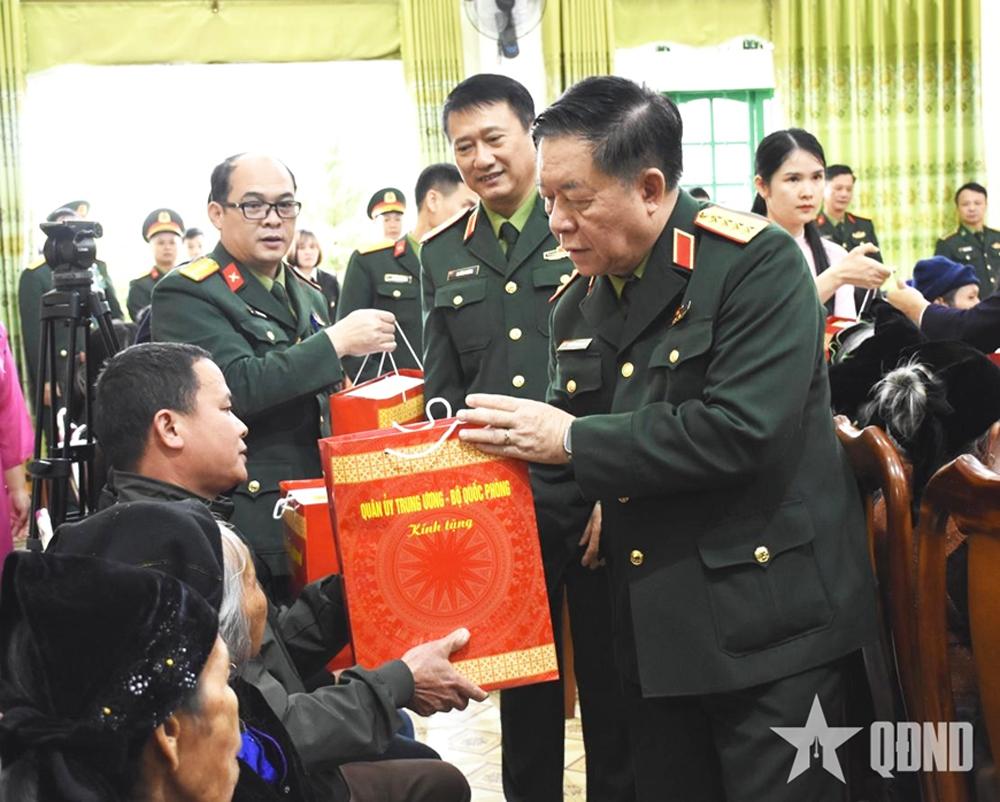 | Đại tướng Nguyễn Trọng Nghĩa, Ủy viên Bộ Chính trị, Bí thư Trung ương Đảng, Ủy viên Thường vụ Quân ủy Trung ương, Chủ nhiệm Tổng cục Chính trị Quân đội nhân dân Việt Nam trao quà tặng các gia đình chính sách, người có công trên địa bàn tỉnh Cao Bằng. |