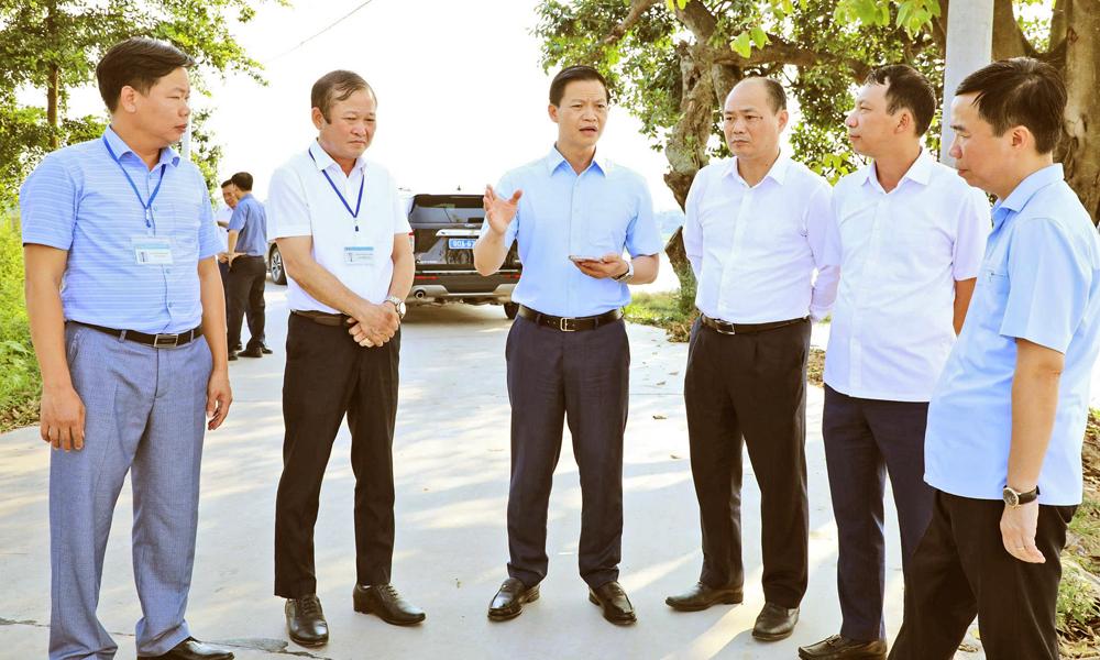 Đồng chí Nguyễn Đại Lượng kiểm tra tiến độ thực hiện dự án đầu tư xây dựng công trình giao thông tại địa bàn. Ảnh: Trịnh Lan. |