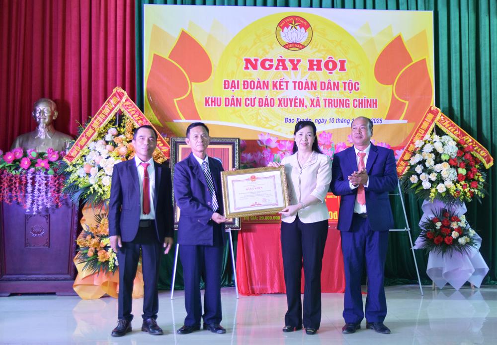 Phát biểu tại Ngày hội, Chủ tịch Ủy ban MTTQ tỉnh Nguyễn Thị Hà chúc mừng và biểu dương những kết quả thôn Đào Xuyên đã đạt được trong năm qua. Đồng chí đề nghị xã Trung Chính nói chung, thôn Đào Xuyên nói riêng tiếp tục phát huy truyền thống tốt đẹp và kết quả đã đạt được, tập trung triển khai một số nhiệm vụ như: Quan tâm rà soát các mục tiêu, nhiệm vụ còn lại của năm 2025, có biện pháp tích cực hoàn thành kế hoạch đã đề ra; tăng cường xây dựng Đảng trong sạch vững mạnh, nâng cao năng lực lãnh đạo của tổ chức cơ sở Đảng, giữ vững khối đại đoàn kết toàn dân.