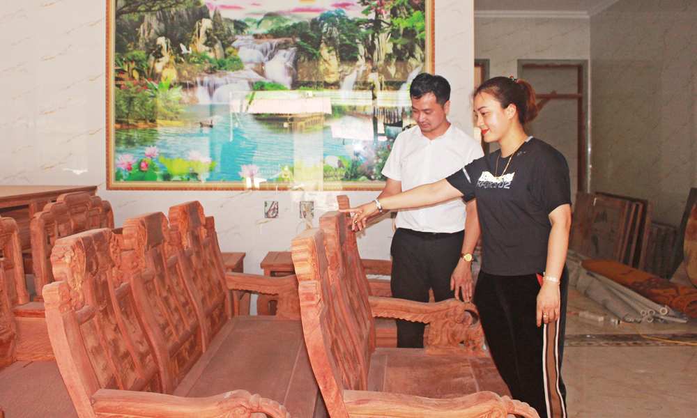 | Sản xuất kinh doanh đồ gỗ mỹ nghệ, tạo việc làm, thu nhập ổn định cho người dân Phù Khê. |