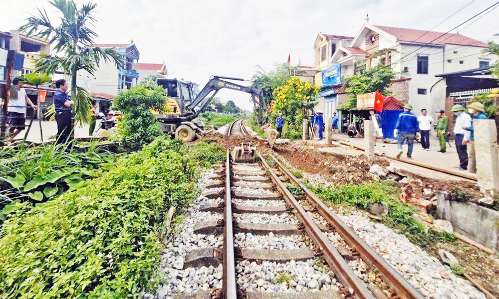 | Xã Tân Dĩnh quan tâm nâng cấp đường gom, tạo thuận lợi cho người dân đi lại khi đóng lối đi tự mở qua đường sắt ở thôn Tân Văn 2. |