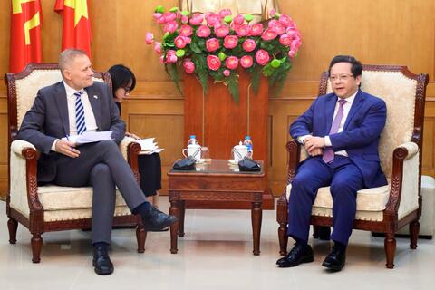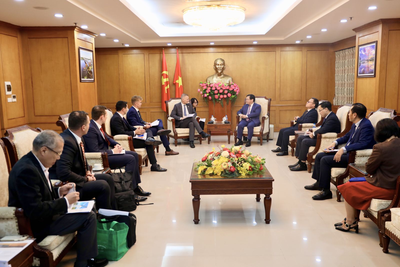 Đồng chí Nguyễn Đức Hiển, Phó Trưởng Ban Chính sách, chiến lược Trung ương tiếp và làm việc với Đại sứ Đan Mạch tại Việt Nam