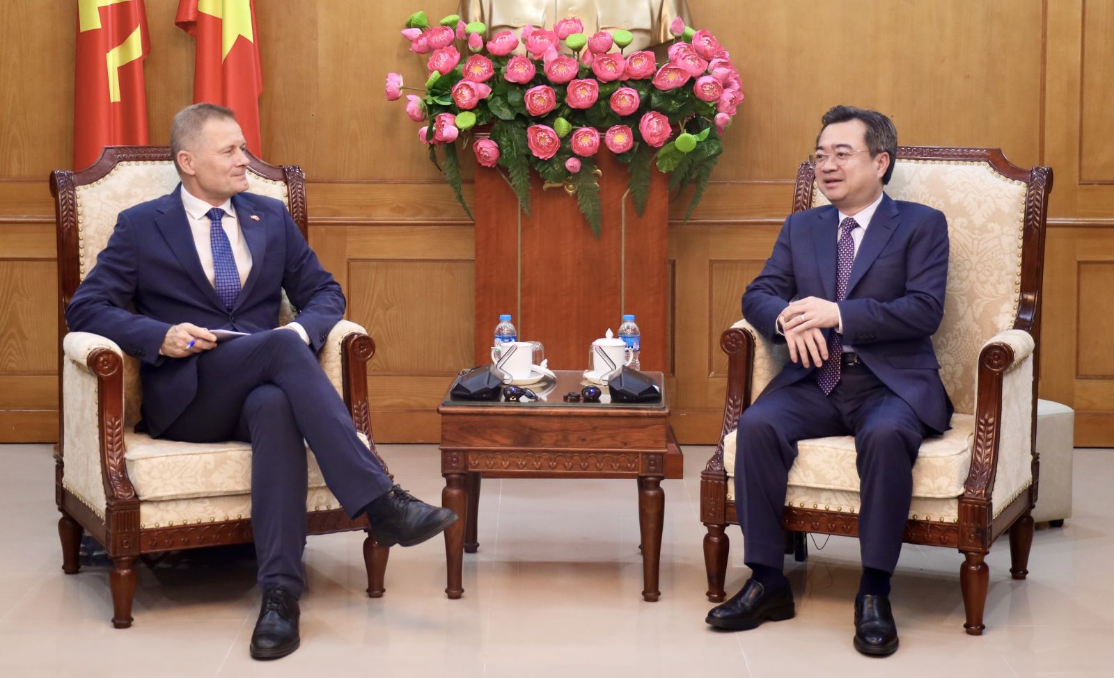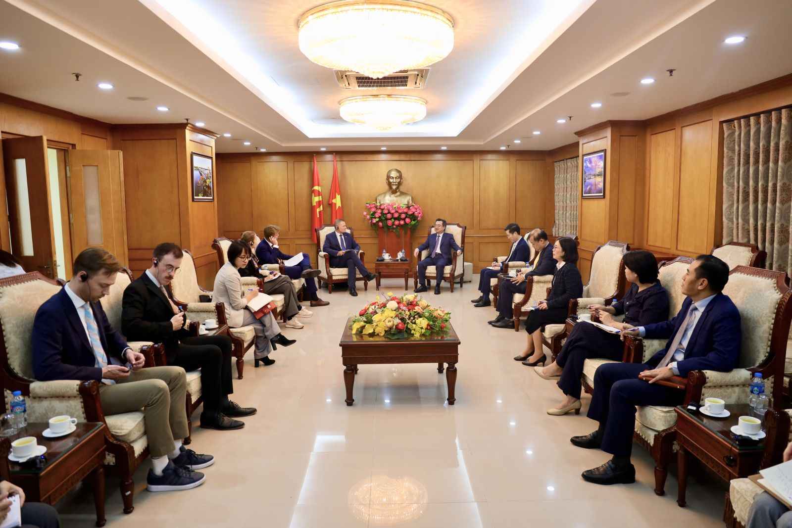 Đồng chí Nguyễn Thanh Nghị, Trưởng Ban Chính sách, chiến lược Trung ương tiếp và làm việc với Đại sứ Đan Mạch tại Việt Nam