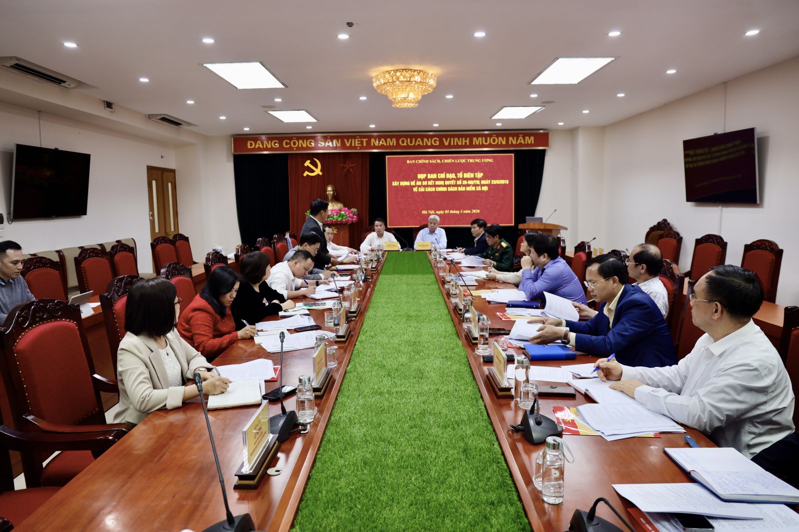 Đồng chủ trì buổi làm việc có các đồng chí: Nguyễn Thế Mạnh, Phó Trưởng Ban Chính sách, chiến lược Trung ương, Trưởng Ban Chỉ đạo; Nguyễn Mạnh Khương, Thứ trưởng Bộ Nội vụ, Phó Trưởng Ban Chỉ đạo. Dự họp có cùng các đồng chí thành viên Ban chỉ đạo, Tổ Biên tập, đại diện một số bộ, ngành, một số cán bộ của Vụ Xã hội.