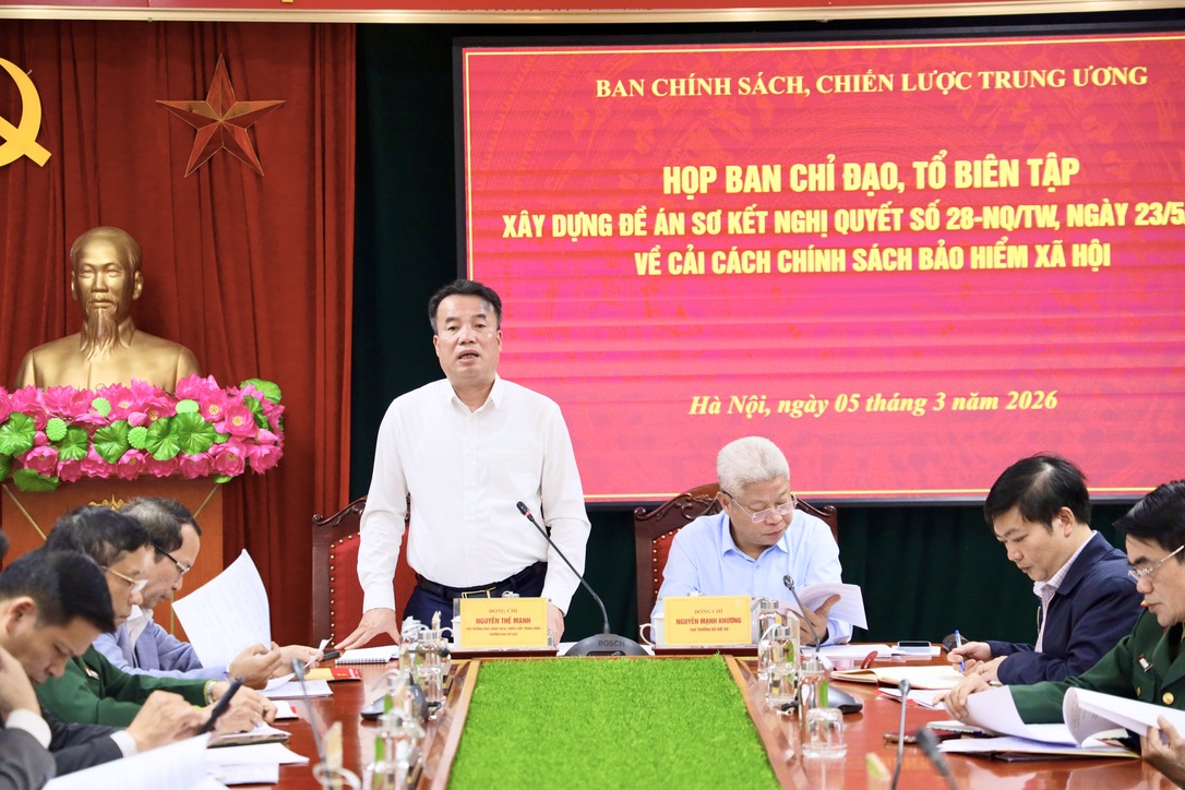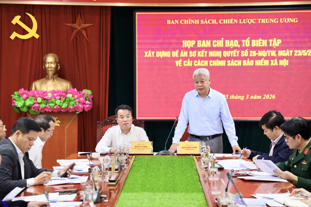Thực hiện kế hoạch công tác năm 2026, chiều ngày 05/03/2026, Ban Chính sách, chiến lược Trung ương tổ chức Hội nghị Ban chỉ đạo, Tổ Biên tập xây dựng Đề án sơ kết Nghị quyết số 28-NQ/TW, ngày 23/5/2018 của Ban Chấp hành Trung ương Đảng khóa XII về cải cách chính sách bảo hiểm xã hội.