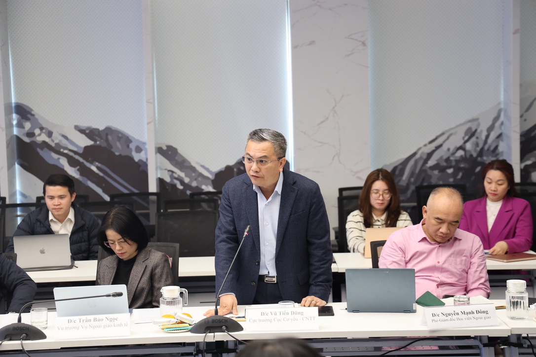Đồng chí Vũ Tiến Dũng, Cục trưởng Cục cơ yếu và CNTT phát biểu ý kiến