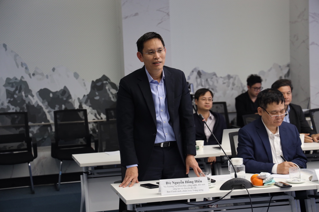 TS. Nguyễn Hồng Hiển, Vụ trưởng Vụ Khoa học công nghệ, đổi mới sáng tạo và chuyển đổi số, Ban Chính sách, chiến lược Trung ương tham gia thảo luận