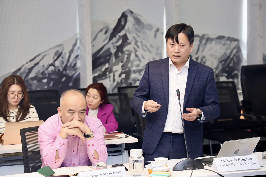 TS. Nguyễn Hùng Sơn, Giám đốc Học viện Ngoại giao trình bày báo cáo chính