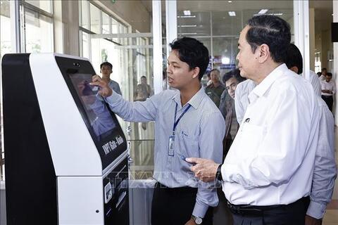 Chủ tịch Quốc hội Trần Thanh Mẫn thăm và làm việc tại Trung tâm Hành chính phường Ninh Kiều. Ảnh: Doãn Tấn/TTXVN