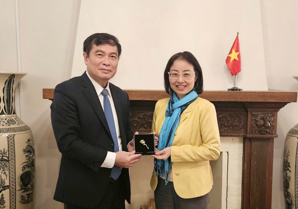 Trao đổi với Đại sứ và cán bộ, nhân viên Đại sứ quán, đồng chí Phan Xuân Thủy đề nghị, mỗi cán bộ ngoại giao phải là những sứ giả lan tỏa hình ảnh Việt Nam độc lập, tự chủ, hòa bình, hữu nghị, phát triển. Bên cạnh đó, Đại sứ quán phải là chỗ dựa tin cậy cho cộng đồng khoảng 17.000 người Việt Nam tại Đan Mạch; là cầu nối để kiều bào hướng về quê hương, đóng góp cho phát triển đất nước./.