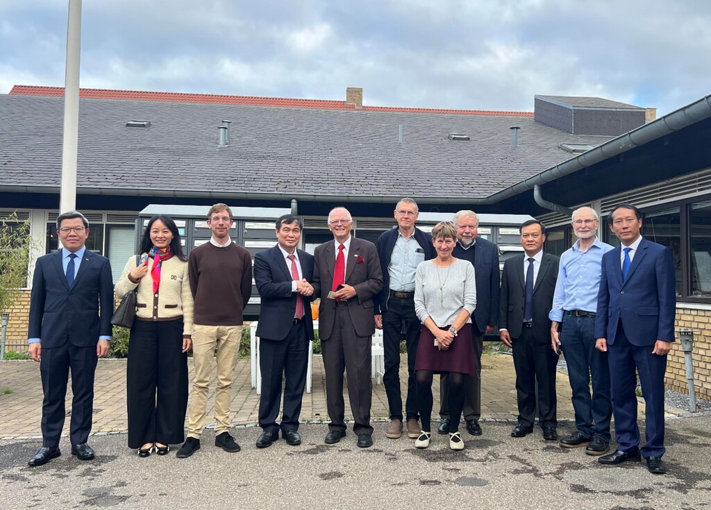 Đồng chí Phan Xuân Thủy, Phó Trưởng ban Tuyên giáo và Dân vận Trung ương và Đoàn công tác chụp ảnh lưu niệm với lãnh đạo, cán bộ Đảng Cộng sản Đan Mạch.