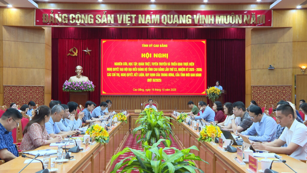 Ngày 16/10, Tỉnh ủy Cao Bằng tổ chức Hội nghị nghiên cứu, học tập, quán triệt, tuyên truyền và triển khai thực hiện Nghị quyết Đại hội đại biểu Đảng bộ tỉnh lần thứ XX, nhiệm kỳ 2025 - 2030; các chỉ thị, nghị quyết, kết luận, quy định của Trung ương, của tỉnh mới ban hành (đợt III/2025). Hội nghị được kết nối trực tuyến đến 134 điểm cầu với hơn 5.500 đại biểu tham dự.