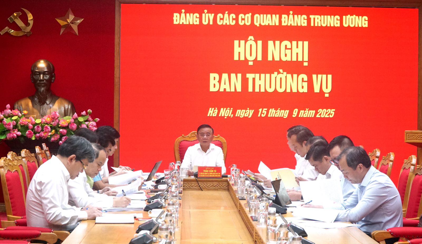 (ĐCSVN) – Chiều 15/9, Ban Chấp hành Đảng bộ các cơ quan Đảng Trung ương tổ chức Hội nghị về công tác chuẩn bị Đại hội đại biểu Đảng bộ các cơ quan Đảng Trung ương lần thứ I, nhiệm kỳ 2025- 2030 và thực hiện quy trình giới thiệu nhân sự đại biểu dự Đại hội XIV của Đảng. Đồng chí Trần Cẩm Tú, Ủy viên Bộ Chính trị, Thường trực Ban Bí thư, Bí thư Đảng ủy các cơ quan Đảng Trung ương chủ trì Hội nghị.