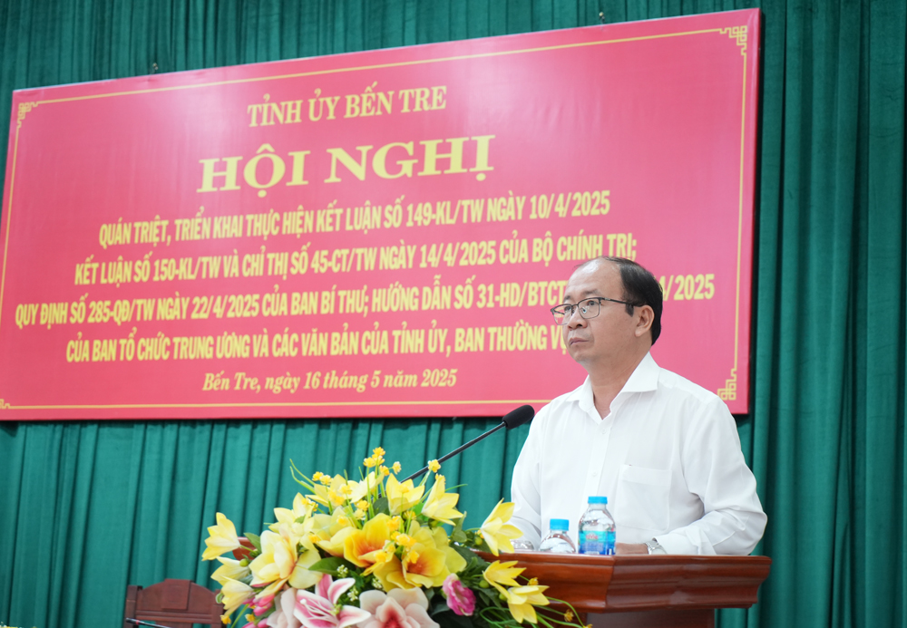 Phó Trưởng Ban Tổ chức Tỉnh ủy Trần Văn Thiêm triển khai Kế hoạch của Ban Thường vụ Tỉnh ủy về đại hội đảng bộ cấp cơ sở và cấp trên cơ sở nhiệm kỳ 2025-2030; Công văn số 8413-CV/BTCTW ngày 26/4/2025 của Ban Tổ chức Trung ương về việc một số nội dung tổ chức đại hội đảng bộ các cấp; Đề án của Tỉnh ủy kết thúc hoạt động của đảng bộ cấp huyện, cấp xã; thành lập các đảng bộ cấp xã mới trực thuộc Tỉnh ủy.