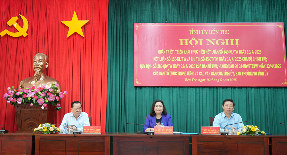 Phát biểu chỉ đạo, Bí thư Tỉnh ủy - Chủ tịch HĐND tỉnh Hồ Thị Hoàng Yến đề nghị, sau hội nghị, các cấp ủy, tổ chức đảng, cán bộ, đảng viên cần nêu cao tinh thần trách nhiệm, tiếp thu đầy đủ, toàn diện nội dung của các Kết luận, Chỉ thị, Hướng dẫn của Trung ương và Đề án, Kế hoạch, Hướng dẫn của Tỉnh ủy, Ban Thường vụ Tỉnh ủy.