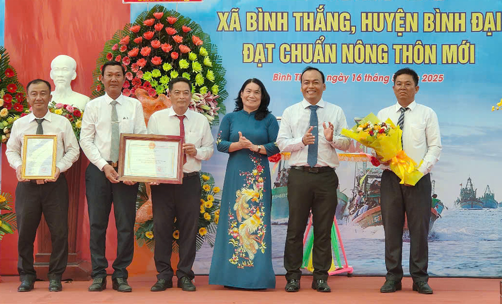 Phát biểu tại buổi lễ, Phó Chủ tịch UBND huyện Huỳnh Văn Mai đề nghị cấp ủy, chính quyền, MTTQ và các tổ chức chính trị - xã hội xã Bình Thắng trong thời gian tới tiếp tục đề cao trách nhiệm, nâng cao nhận thức của cả hệ thống chính trị về xây dựng nông thôn mới. Tập trung thực hiện các giải pháp phát triển kinh tế biển, nhất là đẩy mạnh phát triển khai thác thủy sản xa bờ gắn với phát triển dịch vụ hậu cần nghề cá, chế biến hải sản. Tập trung xây dựng sản phẩm OCOP đối với các loại hải sản chủ lực của địa phương. Huy động nguồn lực đầu tư, thường xuyên nâng cấp các tuyến giao thông, cảng cá Bình Đại; mời gọi, thu hút doanh nghiệp đầu tư phát triển ngành logistics, dịch vụ hậu cần nghề cá, chế biến thủy sản tại địa phương, góp phần giải quyết việc làm, tăng thu nhập, từng lúc nâng cao đời sống vật chất và tinh thần của Nhân dân.