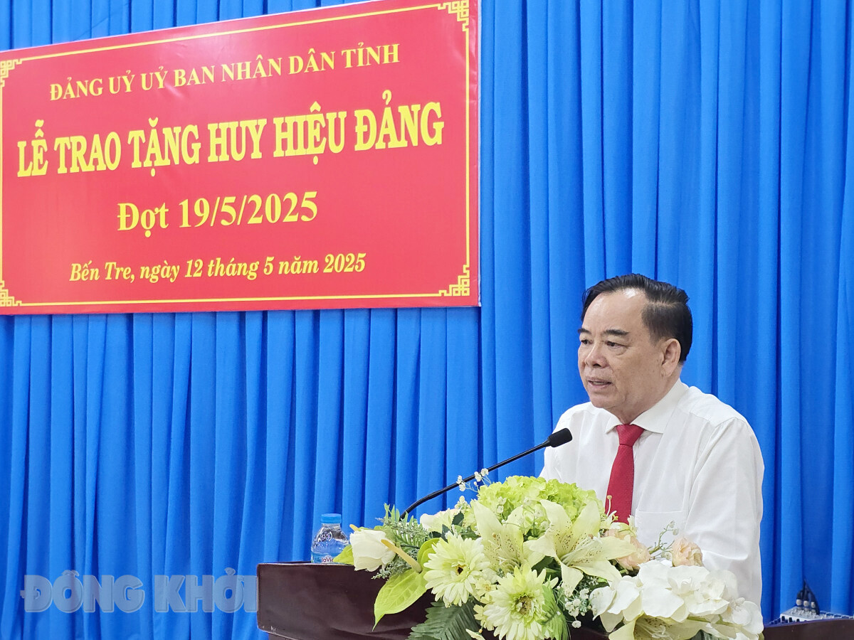 Phát biểu tại buổi lễ, Phó bí thư Tỉnh ủy - Chủ tịch UBND tỉnh, Bí thư Đảng ủy UBND tỉnh Trần Ngọc Tam, thay mặt Ban Thường vụ Tỉnh ủy, Ban Thường vụ Đảng ủy UBND tỉnh, chúc mừng các đồng chí vừa nhân Huy hiệu Đảng. Việc trao Huy hiệu Đảng cho các đồng chí đảng viên, nhất là đảng viên nhiều tuổi đảng là cả một quá trình nỗ lực phấn đầu vượt qua mọi khó khăn, thử thách để hoàn thành nhiệm vụ được giao. Do vậy, đề nghị các đồng chí được nhận Huy hiệu Đảng tiếp tục phát huy truyền thống, luôn luôn là tấm gương cho các thế hệ trẻ học tập và noi theo.