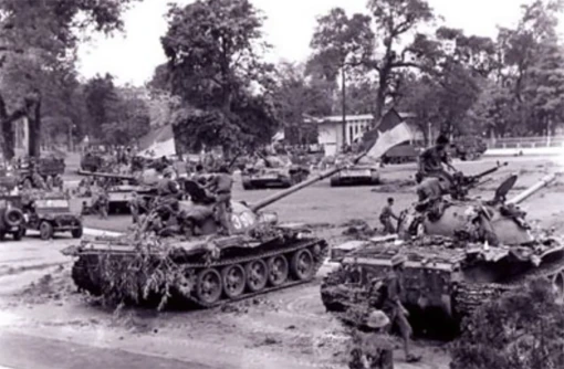Xe tăng Quân Giải phóng chiếm Dinh Độc Lập vào 11 giờ 30 phút ngày 30-4-1975. (ảnh tư liệu)