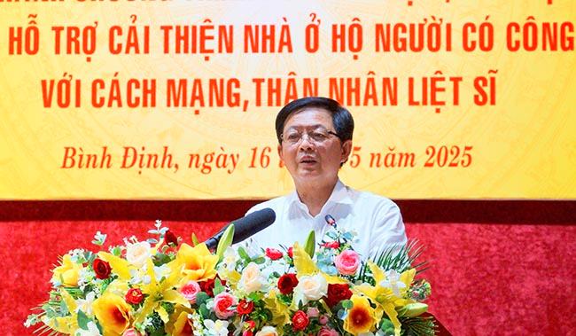 Bí thư Tỉnh ủy Hồ Quốc Dũng cũng nhấn mạnh: Lễ công bố hoàn thành chương trình xóa nhà tạm, nhà dột nát và hỗ trợ cải thiện nhà ở người có công với cách mạng, thân nhân liệt sĩ là sự kiện không chỉ thể hiện trách nhiệm trước Đảng, Nhà nước đối với công tác an sinh xã hội của tỉnh Bình Định mà còn là biểu tượng đẹp của truyền thống “uống nước nhớ nguồn”, tinh thần đoàn kết của dân tộc. Đây không chỉ là dịp để cùng nhìn lại, đánh giá và rút ra những bài học quý báu trong quá trình tổ chức thực hiện mà còn là thời điểm để tiếp tục lan tỏa giá trị nhân văn sâu sắc, hun đúc thêm niềm tin, sự đồng thuận và gắn bó giữa Đảng, chính quyền và nhân dân.