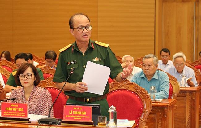 Đại tá, TS Lê Thanh Bài, Phó Viện trưởng Viện Chiến lược và Lịch sử Quốc phòng Việt Nam, Bộ Quốc phòng, trao đổi về dấu ấn chuyển quân tập kết tại Quy Nhơn trong tiến trình cách mạng Việt Nam. Ảnh: H.THU
