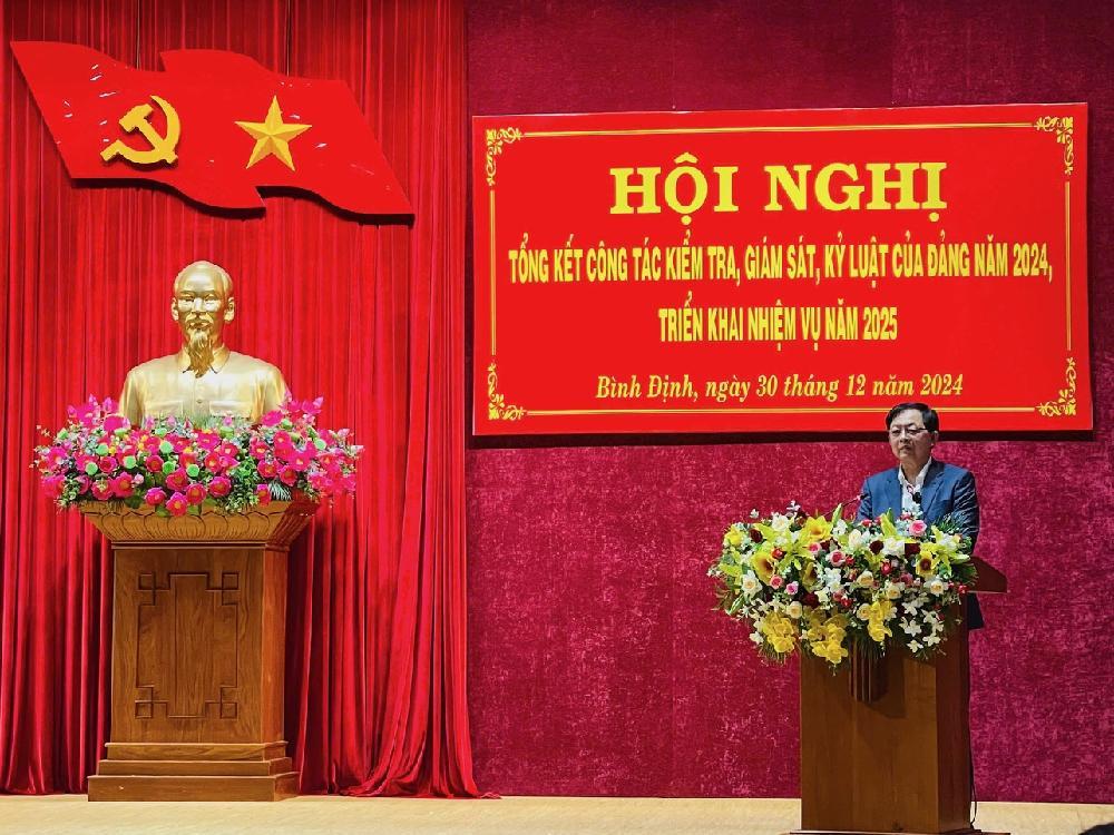 Quang cảnh Hội nghịtổng kết công tác kiểm tra, giám sát, kỷ luậtcủa Đảng năm 2024, triển khai nhiệm vụ năm 2025của Đảng bộ tỉnh Bình Định