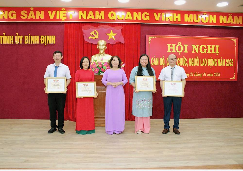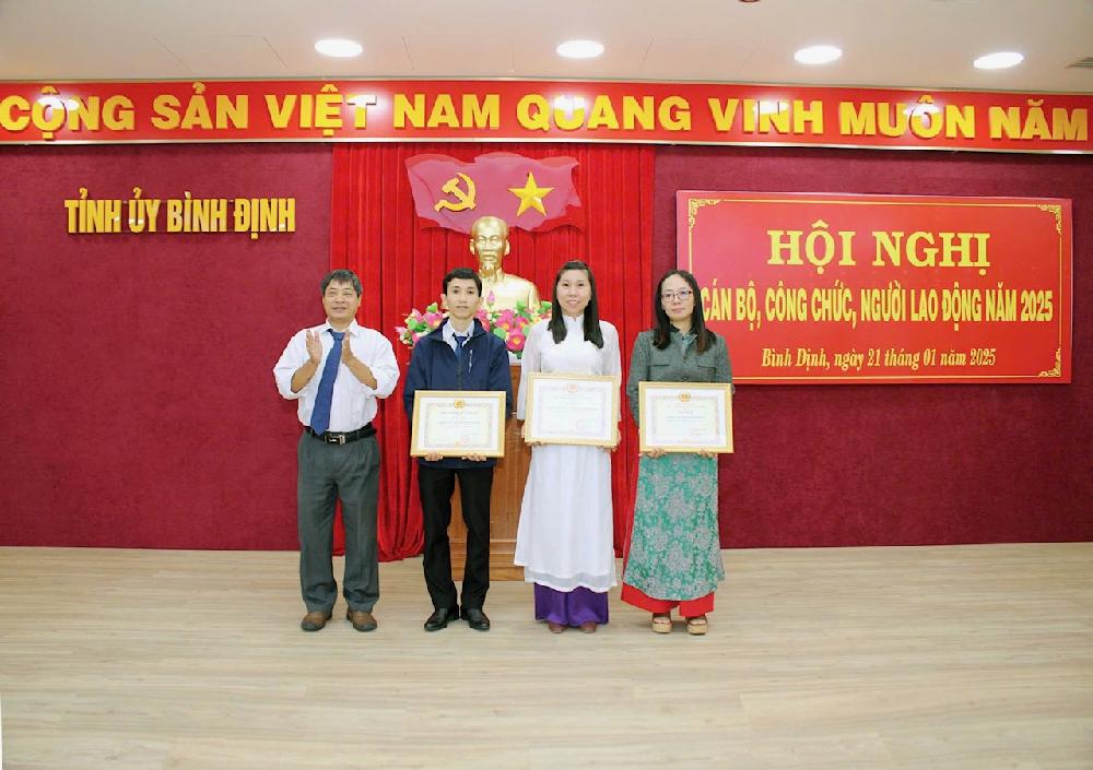 Các đ/c lãnh đạo Văn phòng Tỉnh ủy trao tặng Giấy khen cho các cá nhân đã hoàn thành tốt nhiệm vụ công tác năm 2024.