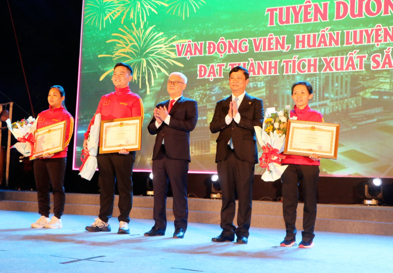 Lãnh đạo tỉnh tặng bằng khen và hoa chúc mừng 20 vận động viên, huấn luyện viên thể thao đạt thành tích xuất sắc năm 2024
