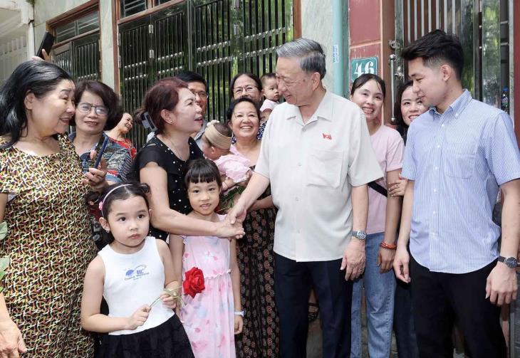 Tổng Bí thư Tô Lâm với nhân dân phường Lê Lợi, thành phố Hưng Yên, tỉnh Hưng Yên_Ảnh: TTXVN