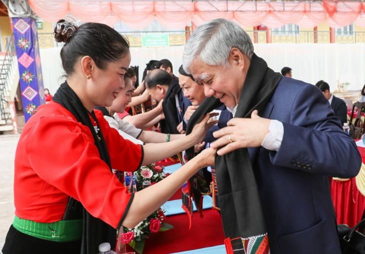 Ủy viên Bộ Chính trị, Bí thư Trung ương Đảng, Chủ tịch Ủy ban Trung ương Mặt trận Tổ quốc Việt Nam Đỗ Văn Chiến chung vui ngày hội đại đoàn kết cùng đồng bào các dân tộc xã Mường Sang, huyện Mộc Châu, tỉnh Sơn La, tháng 11-2022 _Nguồn: daidoanket.vn