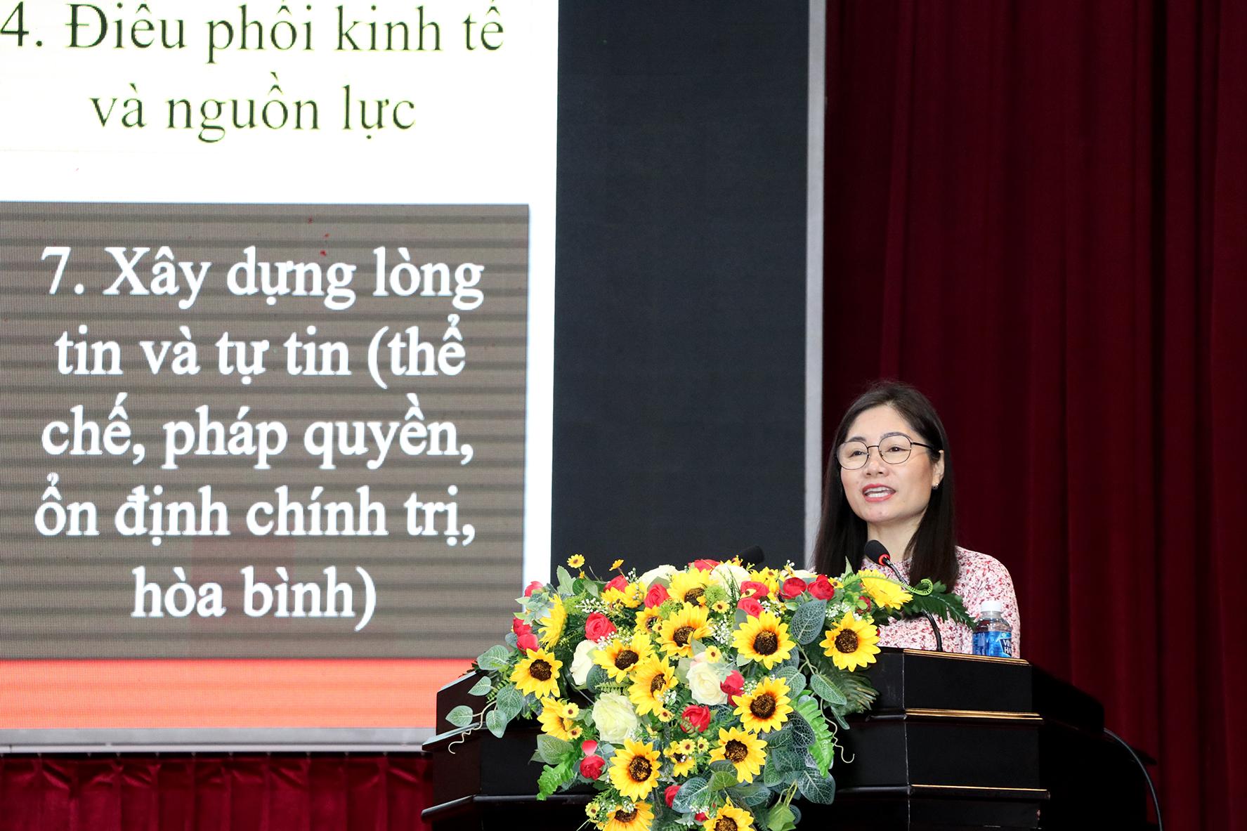 Trình bày chuyên đề về cải cách hành chính Nhà nước, đáp ứng yêu cầu xây dựng nền hành chính dân chủ, chuyên nghiệp, hiện đại, hiệu lực, hiệu quả, PGS.TS Nguyễn Thị Tuyết Mai - Phó Giám đốc Học viện Chính trị Khu vực II nhấn mạnh: Công tác cải cách hành chính những năm qua đã đạt được kết quả khá toàn diện và nổi bật, tạo động lực mạnh mẽ cho phát triển bền vững kinh tế - xã hội, góp phần quan trọng nâng cao hiệu lực, hiệu quả hoạt động của bộ máy hành chính Nhà nước từ Trung ương đến địa phương, từ đó nâng cao vị thế, năng lực cạnh tranh quốc tế. Nghị quyết Đại hội XIII của Đảng đề ra định hướng phát triển đất nước đến năm 2030 là “Xây dựng và hoàn thiện Nhà nước pháp quyền xã hội chủ nghĩa trong sạch, vững mạnh, tinh gọn, hoạt động hiệu lực, hiệu quả, vì nhân dân phục vụ và vì sự phát triển của đất nước”.