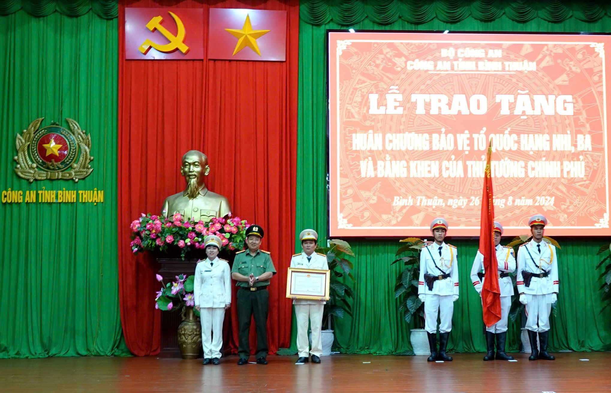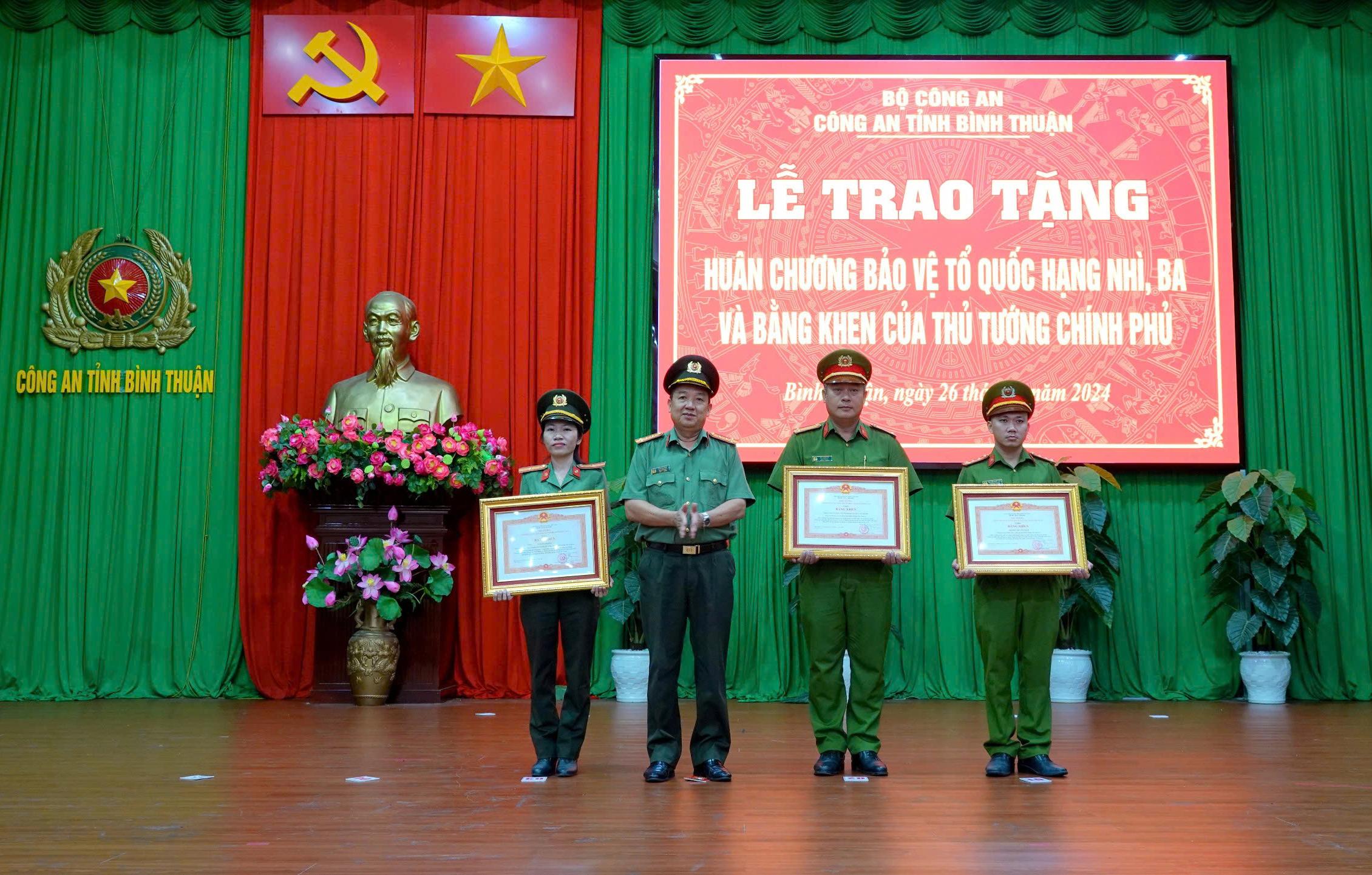 Tại buổi lễ, Ban Tổ chức đã công bố Quyết định và trao tặng Huân chương Bảo vệ Tổ quốc hạng Nhì của Chủ tịch nước cho tập thể Đội An ninh, Công an huyện Hàm Tân; tặng Huân chương Bảo vệ Tổ quốc hạng Ba cho 06 đồng chí nguyên là lãnh đạo, chỉ huy có quá trình cống hiến; tặng Bằng khen của Thủ tướng Chính phủ cho 2 tập thể và 1 cá nhân thuộc Công an tỉnh Bình Thuận có thành tích xuất sắc trong chiến đấu và phục vụ chiến đấu, xây dựng lực lượng CAND, giữ gìn trật tự an toàn xã hội, góp phần vào sự nghiệp xây dựng xã hội chủ nghĩa và bảo vệ Tổ quốc.